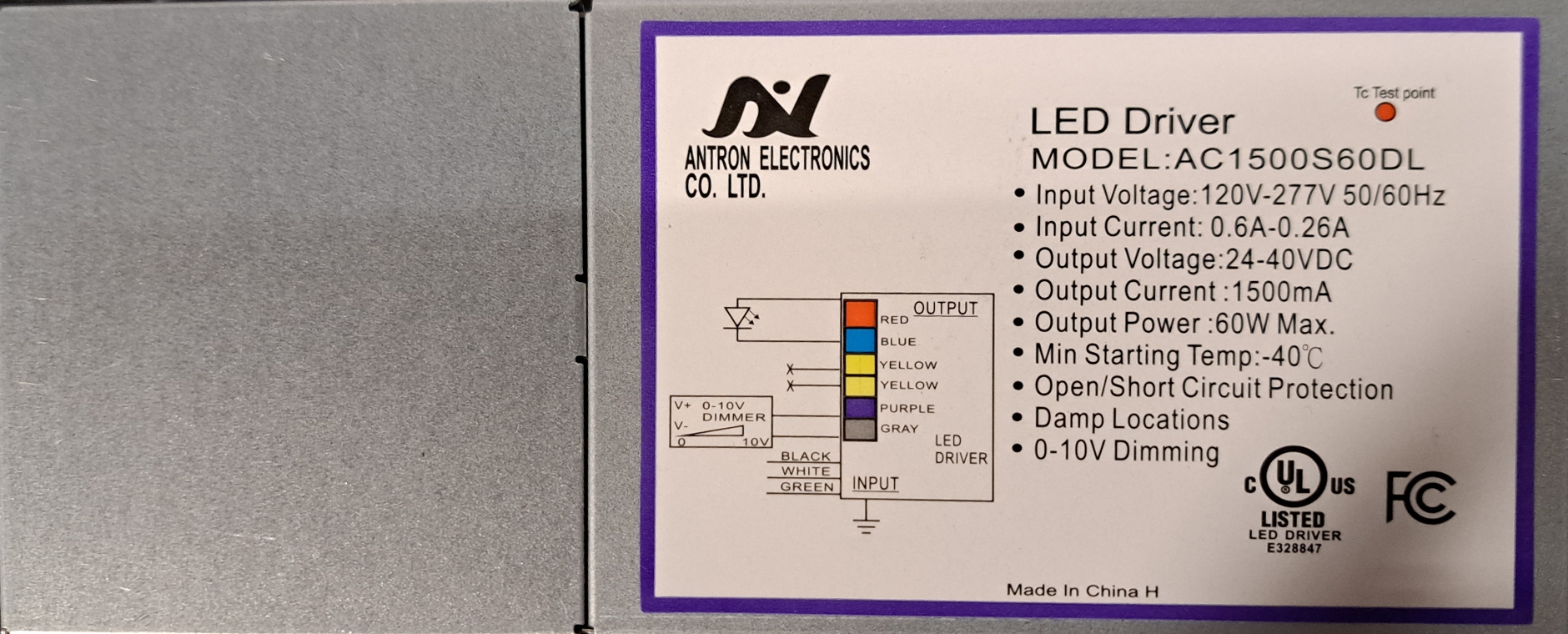 LED Driver, 60 watts, 24-40V DC Dimming 0-10V, Max. 1.5A, Damp Locations, 120M
